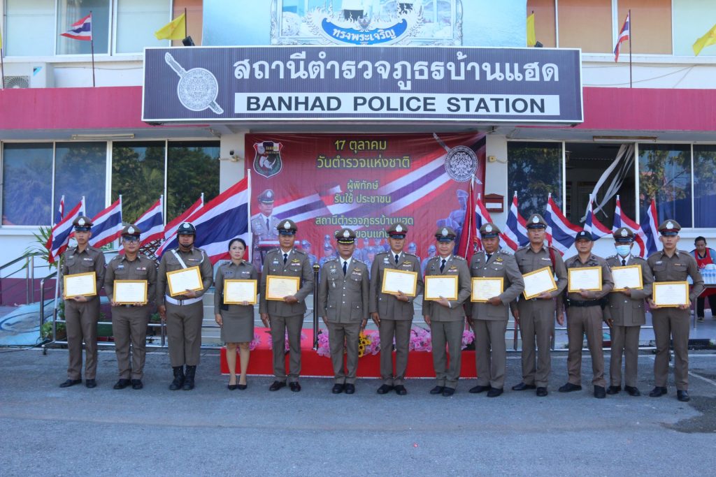 พร้อมด้วย ข้าราชการตำรวจ สภ.บ้านแฮด , หัวหน้าส่วนราชการอำเภอบ้านแฮด , คณะกรรมการ กต.ตร.สภ.บ้านแฮด และ ประชาชนในพื้นที่, ผู้นำชุมชน, ร่วมพิธีทำบุญตักบาตรเนื่องในวันตำรวจ ประจำปี 2568 , พิธีกล่าวคำปฏิญาณและอุดมคติของตำรวจ , อ่านสารจาก ผบ.ตร. , จากนั้น ผกก.ฯ ได้มอบประกาศเกียรติคุณให้แก่ข้าราชการตำรวจที่ปฏิบัติหน้าที่ดีเด่นในแต่ละสายงาน และได้มอบใบประกาศเกียรติคุณให้แก่หน่วยงานราชการและบุคคลที่ให้การช่วยเหลือสนับสนุนภารกิจของตำรวจด้วยดี